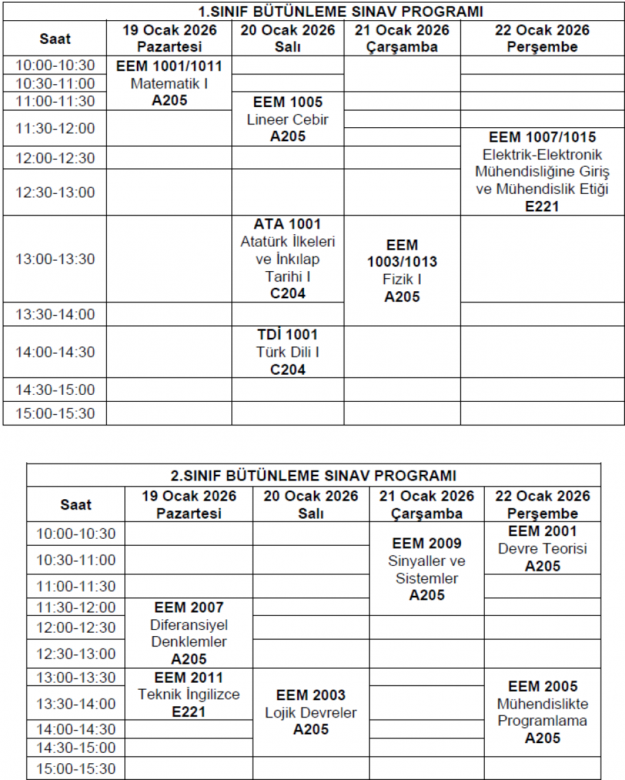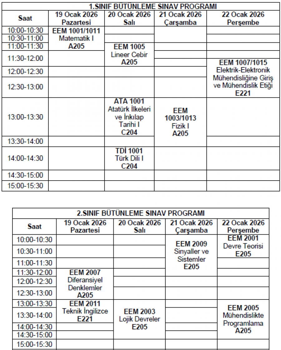 Bütünleme Sınav Programı