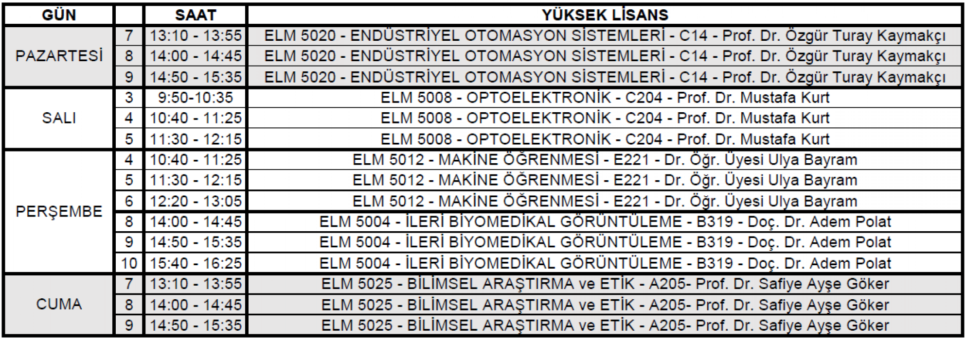 Yüksek Lisans Ders Programı
